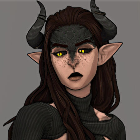 (She/He/They)Orientation: Asexual / BiromanticSpecies: Succubus / IncubusHeight: Stays around 6'3 but can become up to 12ft tall if neededWeight: VariesBirthday: November 13thZodiac Sign: ScorpioDisguise Source: ShapeshiftingPersonality / Description:A rather cold and cruel shell is often what people are met with when they first talk to the hooded stranger known as Grimbright. A self-appointed guardian of Eath - who they refer to as their "ward" and "the childe" more often than her actual name - they seem as if they'll do anything to protect her. Much in the way that Eath's friend Hax would, but a lot more deadly. Claiming they're doing so as a "favor to her fathers" though it's unclear if that is the truth, or if there's some ulterior motive for their actions.Grimbright as a person is standoffish and often times rude to anyone new they meet. Sometimes even outright violent, as they will not hesitate to pull a knife on someone if they seem sketchy, or simply if they annoy them. It wouldn't be far fetched to say they don't have many, or any, friends as they often keep to themself in the shadows.Rumor has it, though, that there is a softer side to this cold-hearted daemon. After all, why would they be watching out for Eath if they didn't care in some way shape or form?Powers & Abilities:- Shapeshifting: Grimbright can shapeshift into any person they've touched with their bare hands or into a form that the person they touched would find attractive. This change in appearance is only skin deep and shapeshifting into a person does not give them that person's abilities.It's not a power they can turn off, however, so often they wear gloves if they have to touch someone. If questioned he claims this is mostly to avoid finding out what strangers are attracted to, unless they absolutely need to know.It is unclear if their current appearance is their "default" form, a variation of their "default" form, or another guise they prefer to wear.Generally, when shapeshifting, Grimbright can get up to about 10-12 feet tall at max. They can also have up to six functioning arms, twelve functioning eyes, a set of wings, and their scorpion-like. They can also have their skin harden into an almost chitinous material, giving them a natural armor at times.- Flight: Grimbright can shapeshift or summon a pair of wings and take flight with them. They can be rather big and bulky though, so she tends to keep them away unless needed.- Prehensile & Scorpion-like Tail: Their tail is prehensile and can lift small objects, hold a dagger, and wrap around their waist if they don't feel like shapeshifting it away. They can't hang by it, of course, but he has a range of what they can do with it.The tail is also scorpion like with a stinger at the ends and barbs a little further back from the stinger itself. The tail is also strong enough and fast enough to impale someone through the chest if he so chooses.- Venom / Poison: Grimbright's fangs and tail do carry venom in them. Their venom, while it can be deadly in larger doses, usually only causes the following:- Feelings of euphoria and bliss, heightening of more desirable senses (in short, it's a strong aphrodisiac)